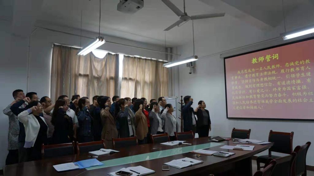 经理吴逸群带领全体教师宣誓教师誓词。(通讯员:冯雨)