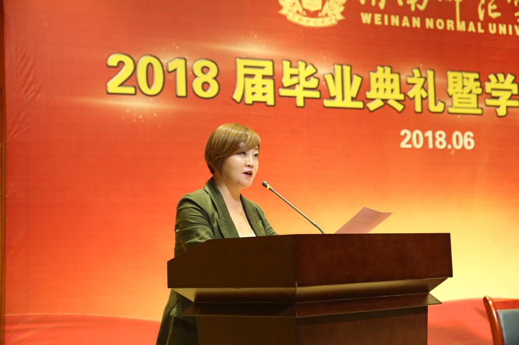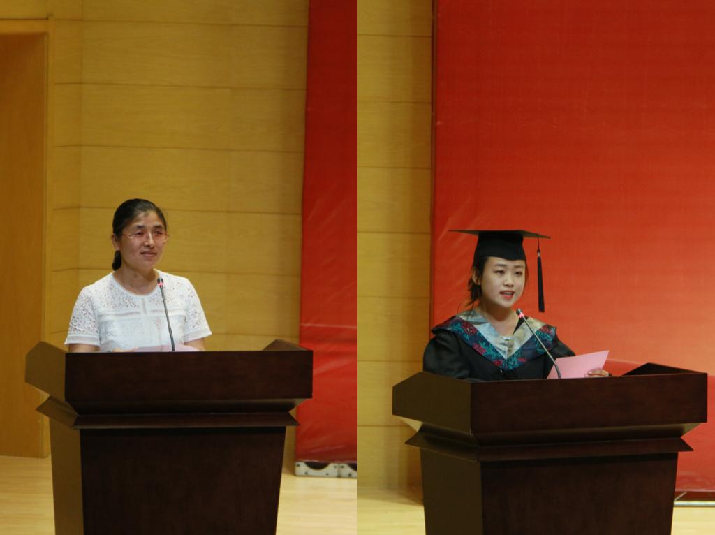 毕业典礼最后,由毕业生代表2014级生物科学专业何丹同学发言,她在发言中回忆了大学四年的美好时光,表达了对老师的感谢对学弟学妹们的祝福。
