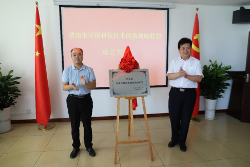 渭南市科技局副局长李立新和公司副经理卢爱刚共同为渭南市环保科技技术创新战略联盟揭牌。李立新解读了成立该联盟的意义,指出成立该联盟是落实习近平总书记有关生态文明建设和科技创新工作指示和要求,坚定不移走“生态优先、绿色发展”之路的实际行动,是渭南市生态环境保护相关机构、企业加强产业协同,为我市生态和环境保护提供有力的科技支撑的途径。