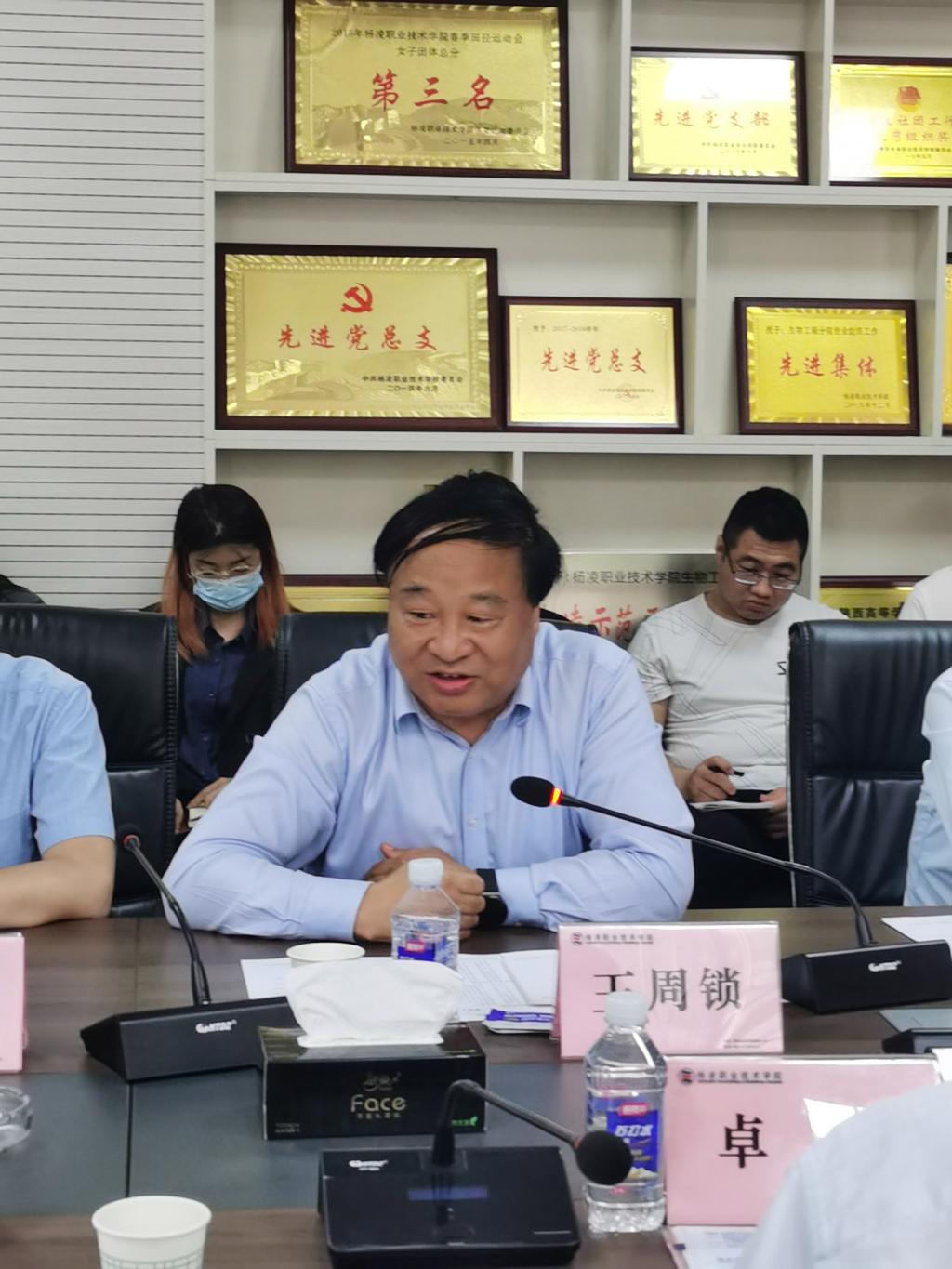 座谈会上,杨凌职业技术学院董事长王周锁对卓宇一行的到来表示欢迎。他介绍了杨凌职业技术学院的办学历史、办学理念、“双高”建设、联合办学工作开展情况。