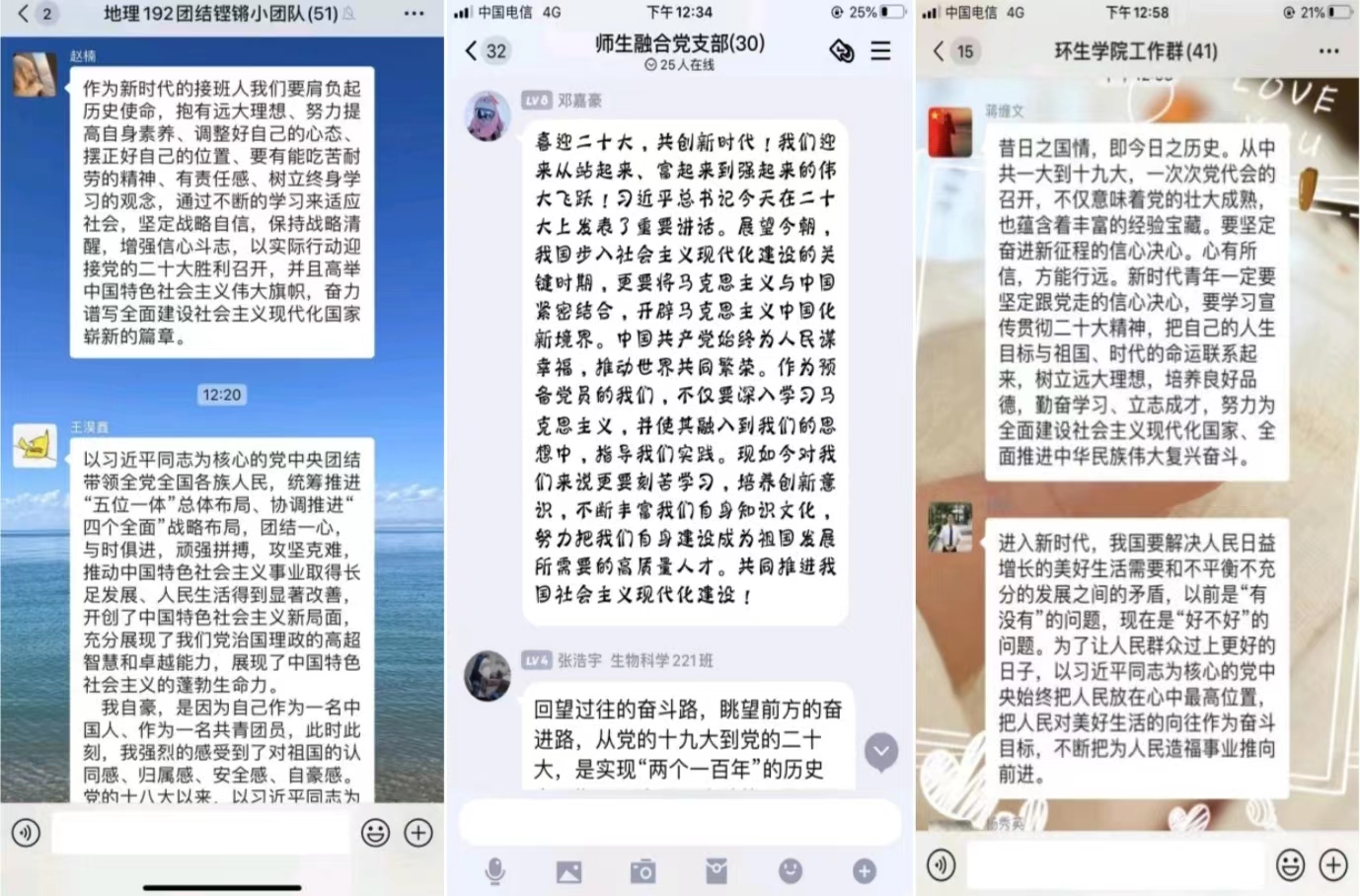 观看结束后,学院全体师生在学习习近平总书记大会报告基础上,利用网络平台,通过线上线下方式热议报告内容,积极交流学习心得,迅速掀起习近平总书记二十大报告学习热潮。