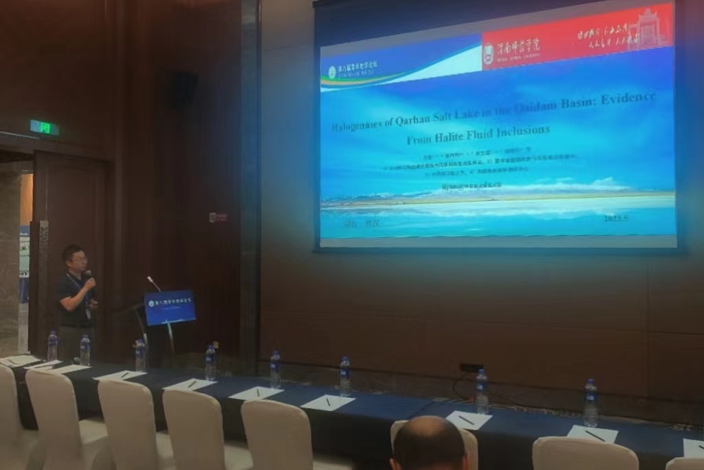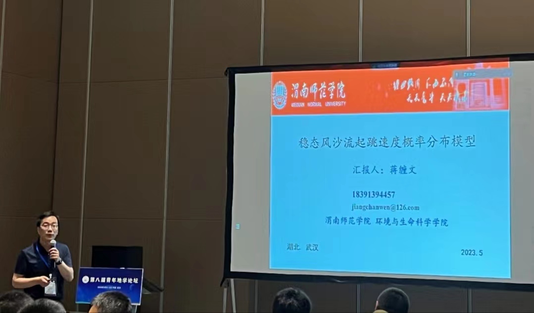 其中,蒋缠文博士在“地表过程与地貌”主题会场中做了题为“稳态风沙流内跃移沙粒的击溅函数”学术报告,介绍了基于高速摄影系统及颗粒与迹检测算法所得出的近床面风沙跃移过程的新认识,与广大专家学者进行了深入交流。李俊博士和丁奕博士也分别在“矿产与资源”及“古生物、古地理与古环境”主题会场做了题为“遗迹化石在二叠纪末海洋缺氧事件研究中的应用”和“Halogenases of Qarhan Salt Lake in the QaidamBasin:Evidence From Halite Fluid Inclusions”的学术报告,对公司近期取得的科研成果进行了宣传,与专家同行进行了友好交流。
