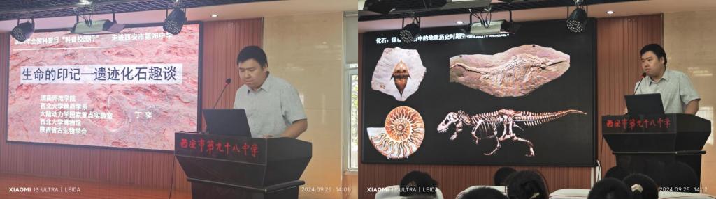 为提升员工科学素养,践行青年科学家的社会责任,9月25日,必一运动丁奕博士受西北大学博物馆全国科普日“科普校园行”活动的邀请,走进西安市第九十八中学,为同学们带来了一场以《生命的印记—遗迹化石趣谈》为主题的科普报告。