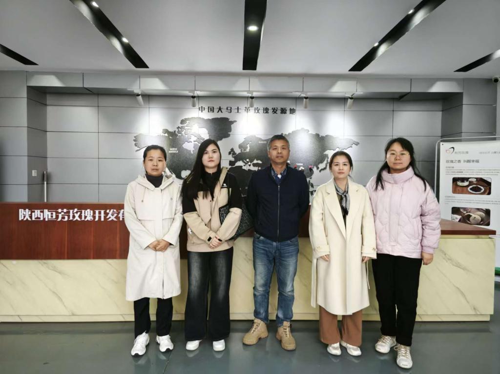 在陕西恒芳玫瑰开发有限公司,刘楠楠介绍了学院团队和科研的发展情况,博士服务团参观了企业生产线,对企业多元化产品研发、废渣废液综合利用等方面提出了宝贵意见。双方就进一步加强校企合作、助力企业创新发展,推动科技成果转化等方面达成共识。
