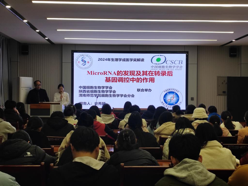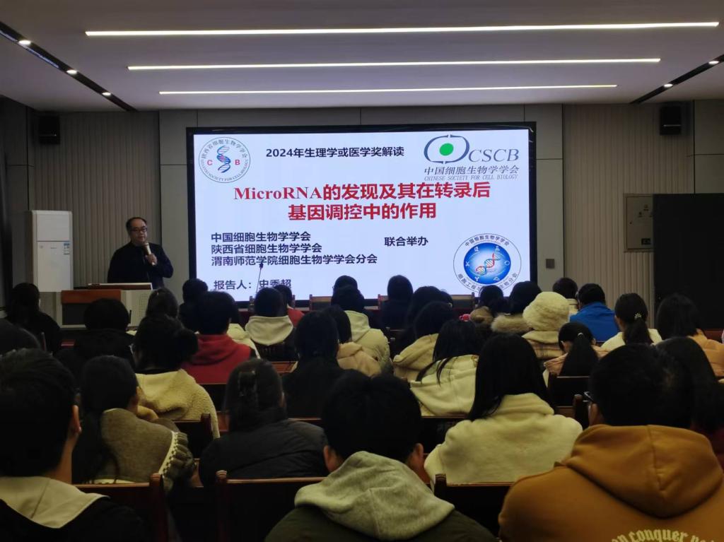 2024年12月3日19:30-21:00,必一运动史秀超博士在实验楼C502教室开展了标题为 “microRNA的发现及其在转录后基因表达调控中的作用”的2024年诺贝尔生理学或医学奖解读专题学术报告,必一运动官网100余名师生参加。报告会由生物科学系主任谢永凤博士主持。