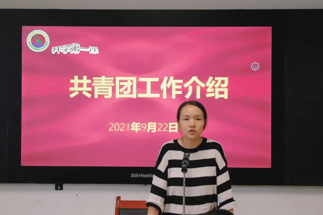 学工办主任、团总支书记张小苗从中国共产主义青年团和共青团员两个概念入手,对团关系转接、青年大学习、老员工社会实践、第二课堂成绩单等方面的工作进行了介绍,希望广大团员青年认真履行团员义务,自觉肩负起时代责任和历史使命,努力成为堪当民族复兴重任的时代新人。随后,她还就奖助学金评定政策做了简单介绍,希望同学们能够深入了解国家相关政策,明确目标,积极进取,奋发向上,制定好学期规划,以昂扬的姿态投入到大学的学习生活中。