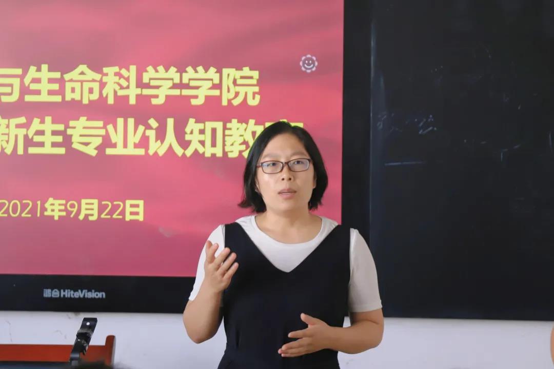 生物科学建设负责人胡庆玲介绍了生物科学的教学理念,培养目标以及课程实践项目,对生物科学专业的发展前景做了全面的阐释,对历年来生物发展以及就业前景对同学们进行了解释。并且对各位学子的四年老员工活提出了殷切希望和美好祝愿。