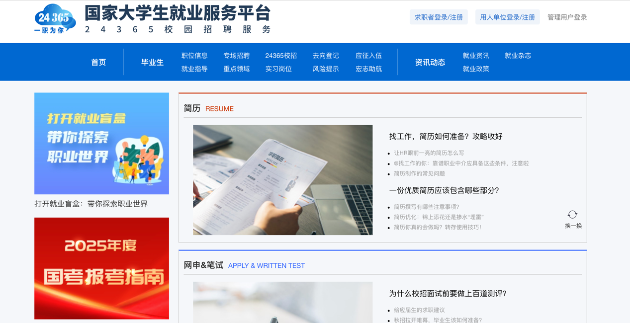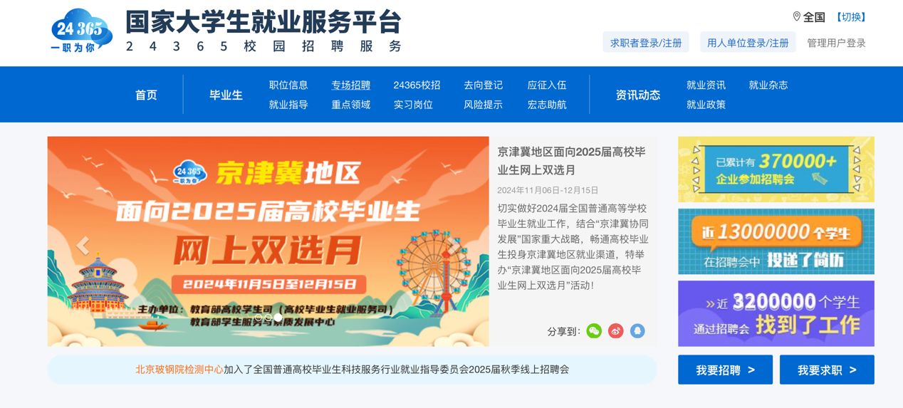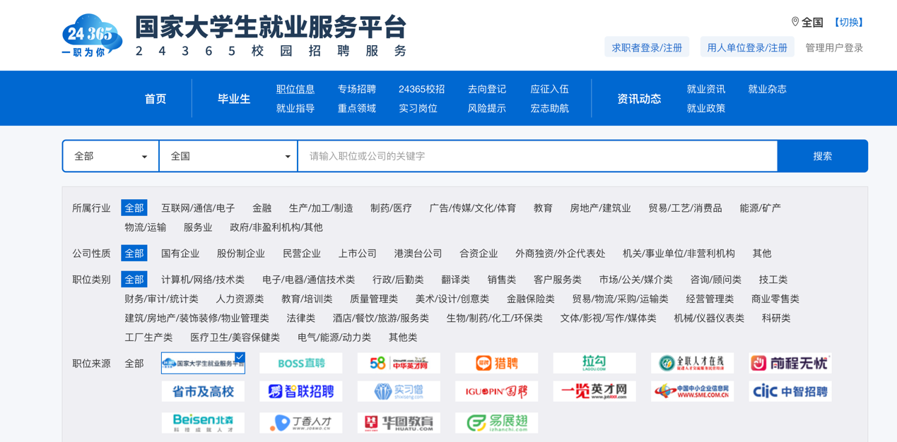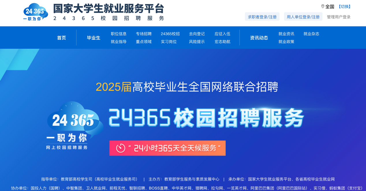 提供24 365,一“职”为你,2025届高校毕业生校园招聘服务。
