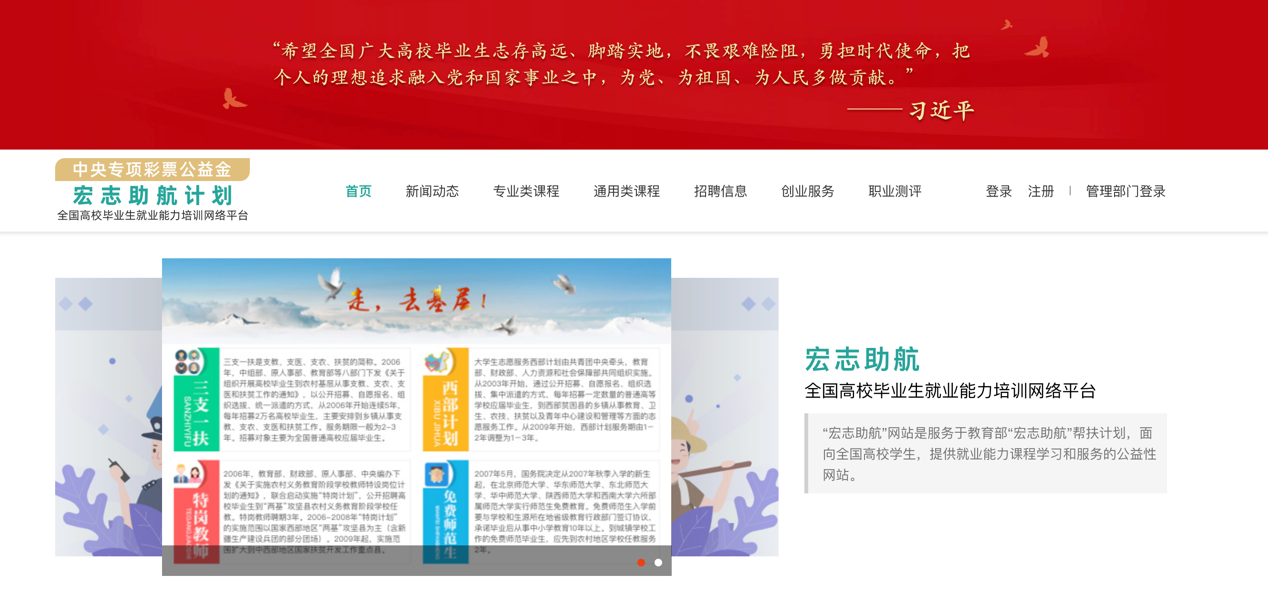 “宏志助航”网站是服务于教育部“宏志助航”帮扶计划,面向全国高校员工,提供就业能力课程学习和服务的公益性网站。