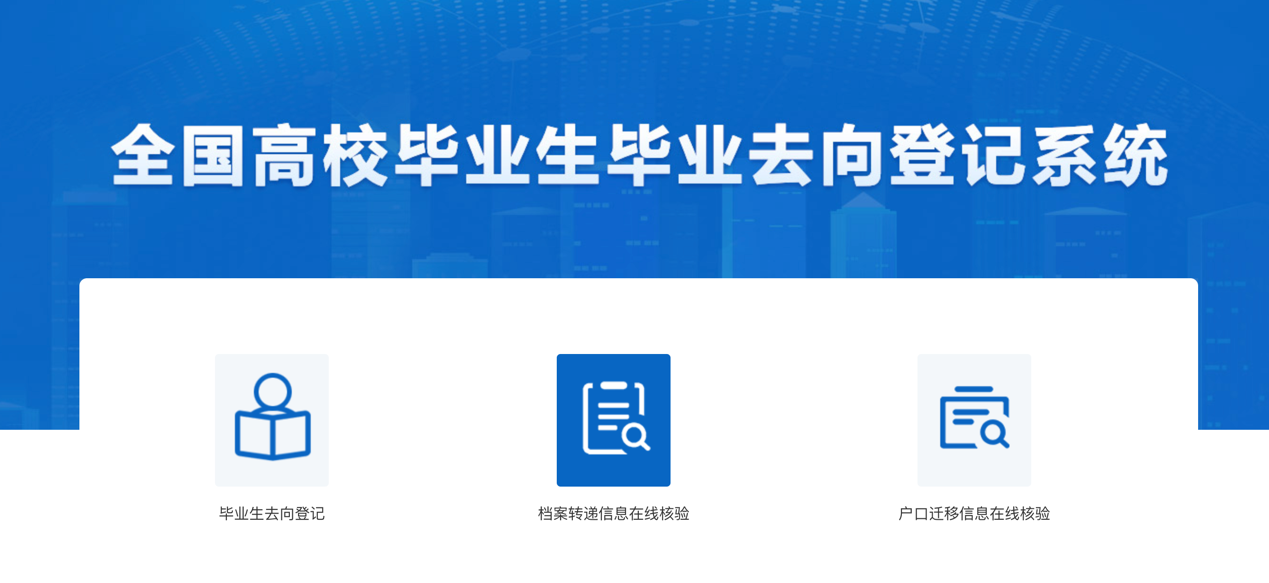 为全国高校毕业生提供毕业去向登记、档案转递信息在线核验、户口迁移信息在线核验服务。