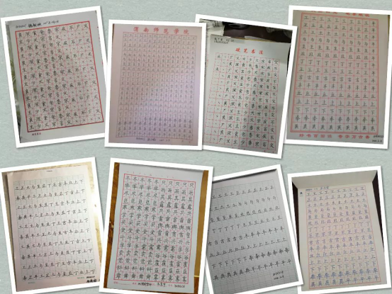 曹老师每天在群里进行理论讲授并布置当天练习作业,同学们每天在班级微信群里按时打卡提交自己的书法练习作业。家里的条件有限,没有书法本,又不能出门购买,有的同学就自己打格子,认真完成书法作业。同学们提交完作业后,曹老师及时批改作业,为大家提出改进意见。同学们很投入,也很认真,在曹老师的指导下,大家的进步也非常大。