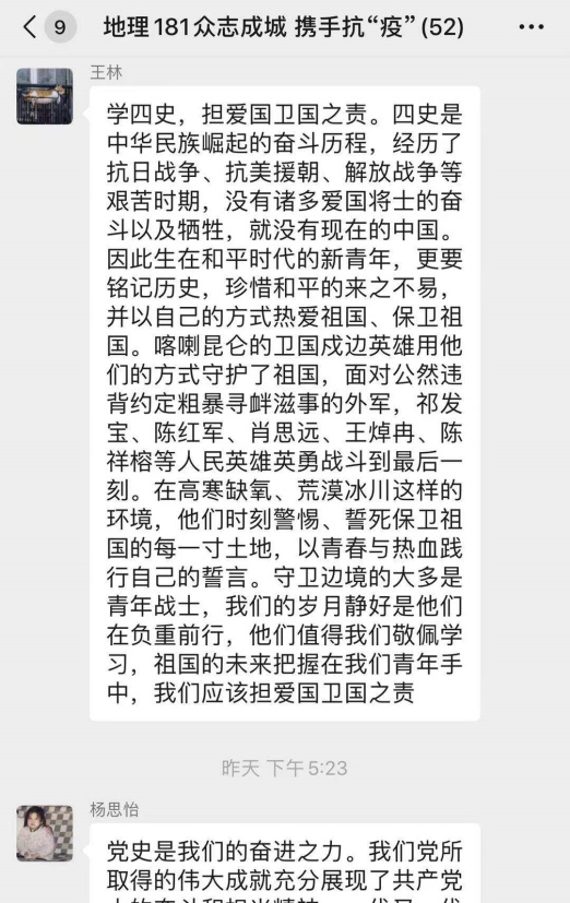 此次“思政大课‘四史’讲堂”开课第一讲“党史”思政大课。课上,北京师范大学马克思主义学院教授赵朝峰以《马克思主义与中国共产党的百年辉煌》为主题,从“中国共产党先进分子选择马克思主义与中国共产党的成立”和“中国共产党运用马克思主义创造的辉煌成就及启示”两大方面讲述了马克思主义与中国共产党的百年辉煌。武汉大学马克思主义学院副教授卢勇围绕“中国共产党与中华民族的伟大复兴”这一主题,探索了长期以来中国共产党带领中国人民进行伟大复兴而不懈奋斗的艰辛历程,教育引导青年学子勇担复兴大任,争做时代新人。南京航天航空大学马克思主义学院教授何畏聚焦“中国共产党革命精神形成与传承的百年历程”这一主题,生动地讲述了“红船精神”“铁人精神”“两弹一勋精神”“抗疫精神”“脱贫攻坚精神”彰显的思想伟力与责任担当。观看结束,师生进行了线上交流讨论,掀起了‘四史’学习教育的热潮。