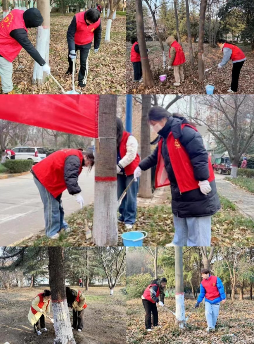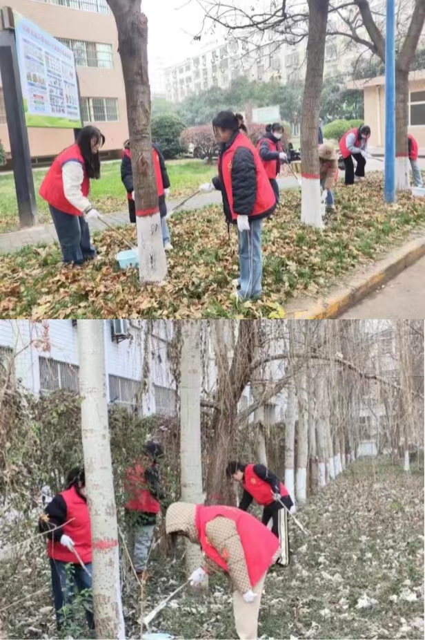 活动现场,同学们手持刷子,一丝不苟地为校园内的树木装扮,确保每一棵树都能得到充分的保护,大家热情高涨,不怕脏、不怕累,一排排、一行行整齐又洁白的树干成了冬日里校园一道靓丽的风景线。