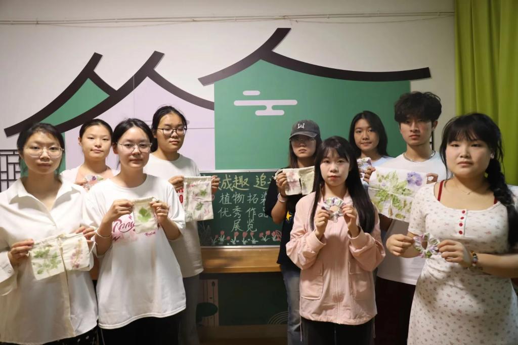 我们从众多作品中选择出优秀作品在10B公寓一站式工作室进行展览,并邀请入选优秀作品的制作者进行作品交流。同学们分享了自己的制作理念,表示体会到植物拓染活动的有趣之处,将继续深入了解并传承非物质文化遗产文化。