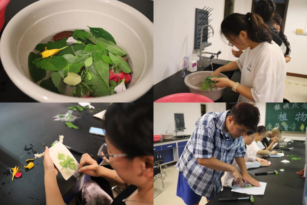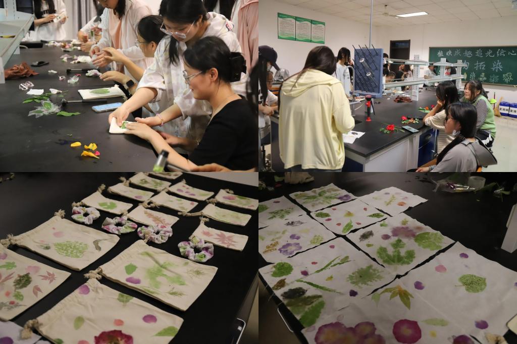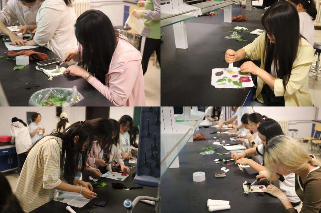 在活动预热阶段,同学们就表现出了极高的热情,整个活动过程中,同学们配合度极高,现场秩序井井有条。5月29日下午,同学们带着在校园中精心挑选的植物叶片和花朵,在C教生态实验室开展本次植物拓印活动。在活动正式开始前,工作人员为大家讲解植物拓染的具体步骤和注意事项,并提醒同学们使用工具时注意安全。同学们认真聆听,学习植物拓染的方法。