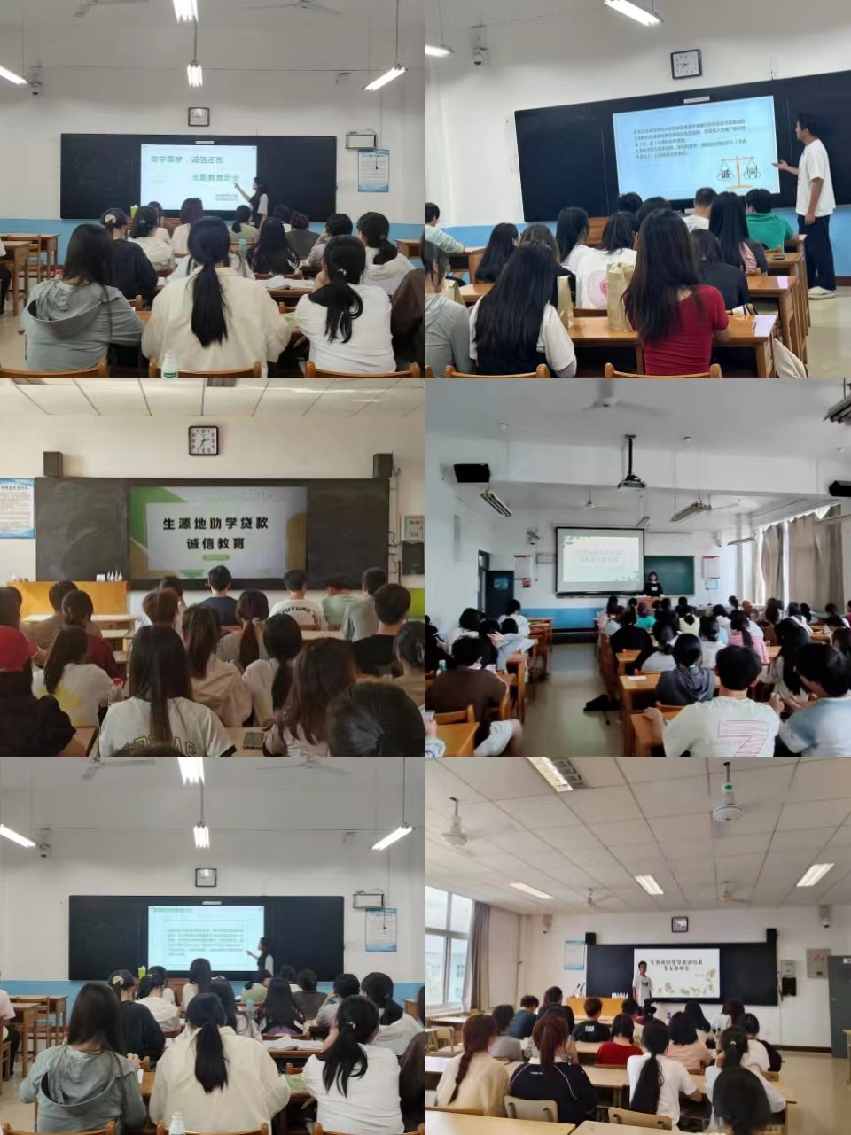 各班积极组织开展了以诚信感恩为主题的班会。各班负责人为同学们讲述了征信知识和失信案例,大家围绕诚信的内涵进行了深入讨论,深刻认识到诚信是立人之本。班会还强调了资助过程需要遵循的诚信原则,教育同学们诚信申请、正确支配奖助学金。此外,各班负责人在班会上进行了“知恩感恩”的思想教育,分享了优秀受助同学积极进取、成长成才的榜样故事,引导同学们更好地理解国家资助体系的意义,学会懂得感恩和践行初心,不懈进取,成长成才,回馈社会,报效祖国。