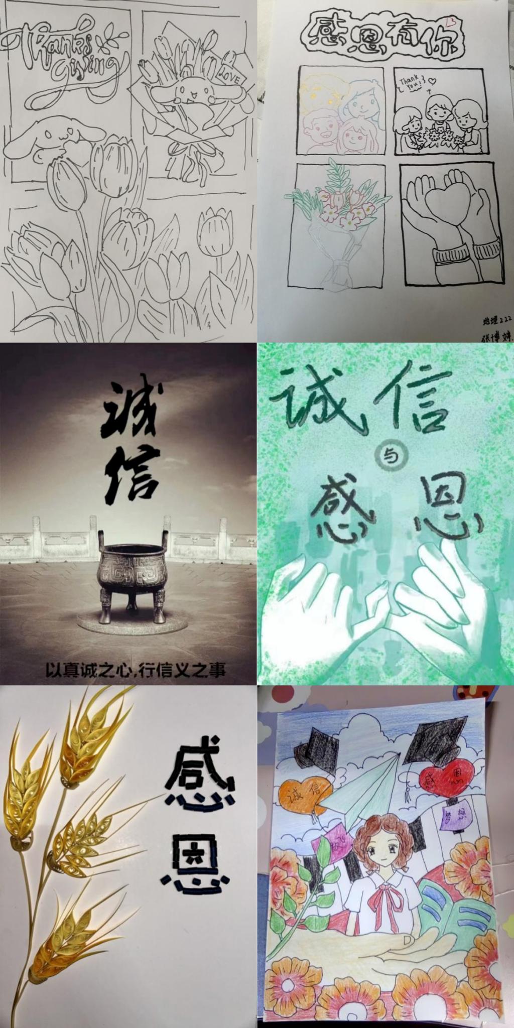 同学们以诚信感恩为主题,通过书法、绘画、剪纸、衍纸以及音乐等多种形式进行创作。这些作品不仅展示了同学们的艺术才华,更传递了诚信感恩的深刻内涵。