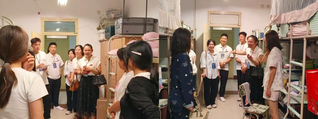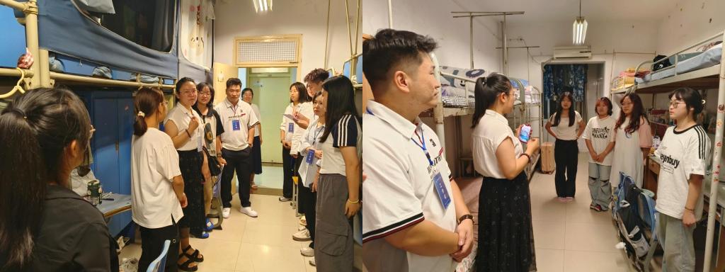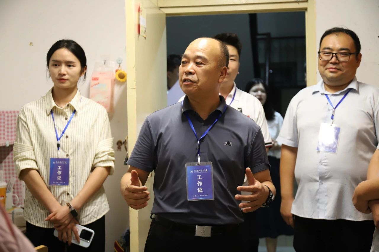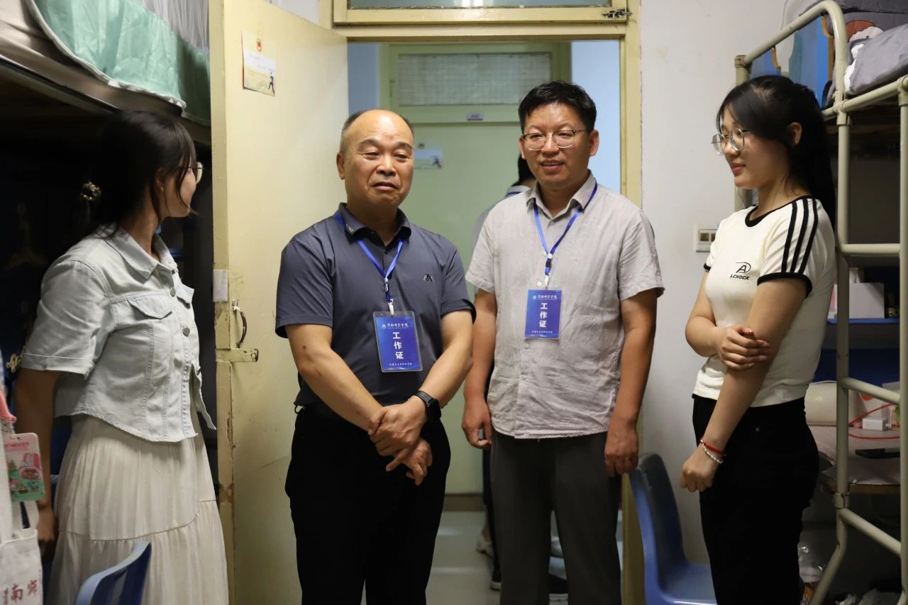 汇报结束后,卢董事长一行在学院领导陪同下深入新生宿舍进行走访慰问。在新生宿舍里,卢董事长与同学们亲切交谈,“你来自哪里?”“在学校还适应吗?”在对话中,卢董事长详细询问了新生们对新环境的适应情况,并鼓励同学们要互帮互助,团结友爱,共同营造温馨和谐的宿舍文化,为未来的职业生涯和人生道路打下坚实的基础。