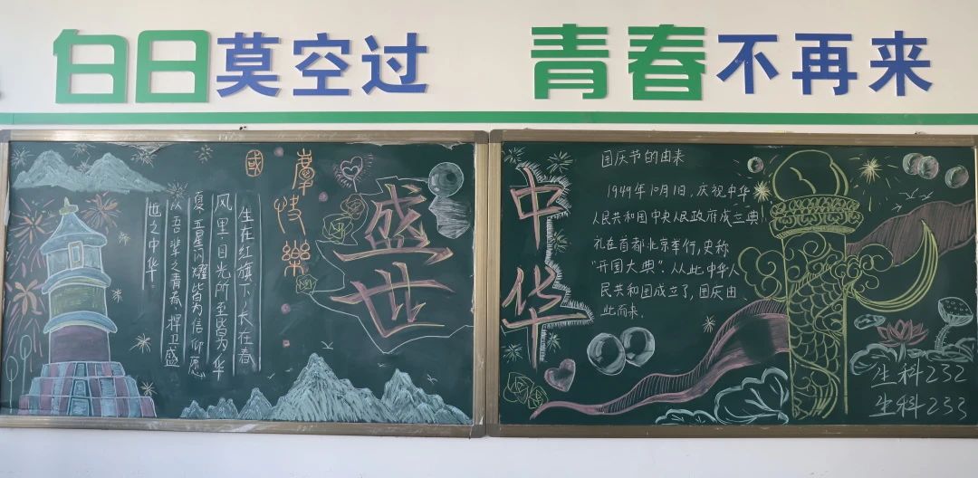黑板上字字句句尽显真情,每一笔、每一划都蕴含着学子们深深的爱国情怀,热烈庆祝着祖国的华诞。我们满怀激情,共绘祖国繁荣富强的美好景象,用粉笔书写着对祖国的无限热爱与真挚祝福。