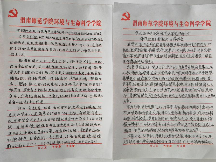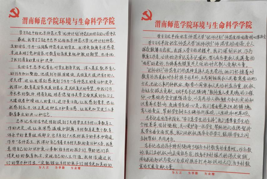 总书记的回信对师范生们寄予殷切期望,并在北师大建校120周年和第三十八个教师节来临之际,向该校师生员工、广大员工表示祝贺和问候。这封回信饱含了习近平总书记对“未来”教师的厚爱和嘱托,也鼓舞了广大青年去书写自己的精彩人生,把个人的理想追求融入党和国家事业之中,为党为祖国为人民作贡献。让我们一起来看看公司“优师计划”师范生学习完后有什么感悟吧。