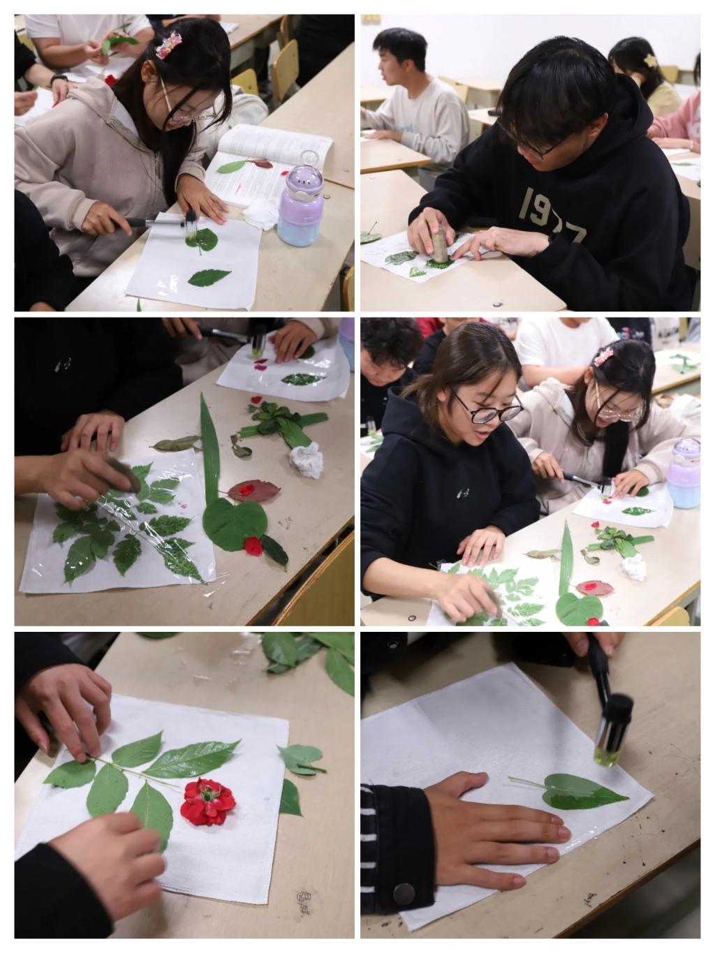 植物拓染,亦称作锤草印花,是一项源远流长的传统手工艺。最初,人们利用植物制作纸张,随后这一技艺逐渐演变为植物拓染,在唐朝时期达到了艺术的巅峰,成为一种高度发展的艺术形式。这一发展历程充分展现了中国古代劳动人民的智慧。本次劳动教育活动借鉴了这一传统工艺,围绕“以劳育德、以劳启智、以劳涵美、以劳健体”四个核心理念展开。