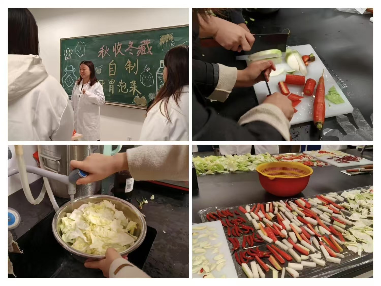 为深入学习宣传和贯彻党的二十大精神,紧扣秋收冬藏的自然节律,通过丰富的实践活动激发员工参与劳动教育的热情,深入了解劳动教育的意义,营造充满科学韵味的良好劳动氛围。农业资源与环境221班于11月13日在食品实验室开展了“秋收冬藏,自制开胃泡菜”实验课程。