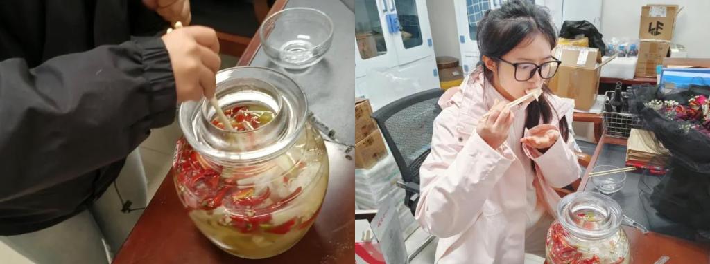 一段时间过后,泡菜腌制成功,同学们开始细细品味亲手制作的美味,入口清爽酸辣,透着蔬菜的脆嫩鲜香。秋收冬藏自制开胃泡菜实践活动,不仅传承了这份独特的美味,更是契合必一运动探索生命与自然的特色,让同学们于实践中收获成长。