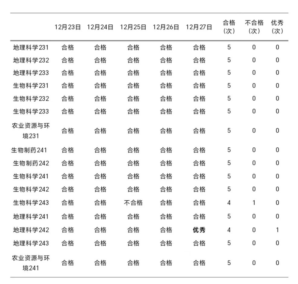 2024-2025学年第一学期第十七周(12月23日-12月27日)公司学习生活部对校园清洁区和教室卫生进行了10次检查,其中表现优秀班级1个,共计1次;合格班级14个,共计78次;不合格班级1个,共计1次。具体情况如下表: