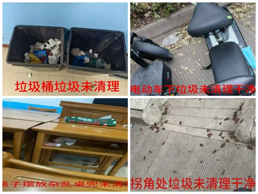 3.教室垃圾桶清理不彻底,存在部分残余,各班清理人员需多加注意。