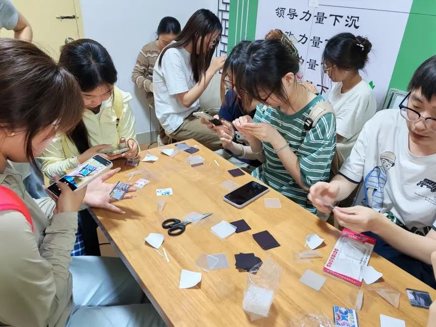 本次活动创新活动形式,鼓励同学们拿起手机,走进校园角落,用心捕捉自己与校园的精彩瞬间,寻找最能触动心弦的“渭师时光”。收集好珍贵的合影后,活动进入了核心环节——制作专属冰箱贴。在工作室负责人的耐心指导下,同学们兴致勃勃地动手实践,将承载着个人情感和校园印记的照片,精心制作成一个个独具特色、晶莹剔透的冰箱贴。活动现场气氛热烈,充满了欢声笑语和创作的成就感。