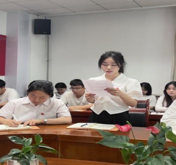 毕业生党员代表张来婷同学回顾了大学四年的学习、生活和工作经历,她表示,作为一名党员,要时刻发挥党员先锋模范带头作用,以身作则,率先垂范,用行动描绘新时代青年党员的志气、骨气和底气!