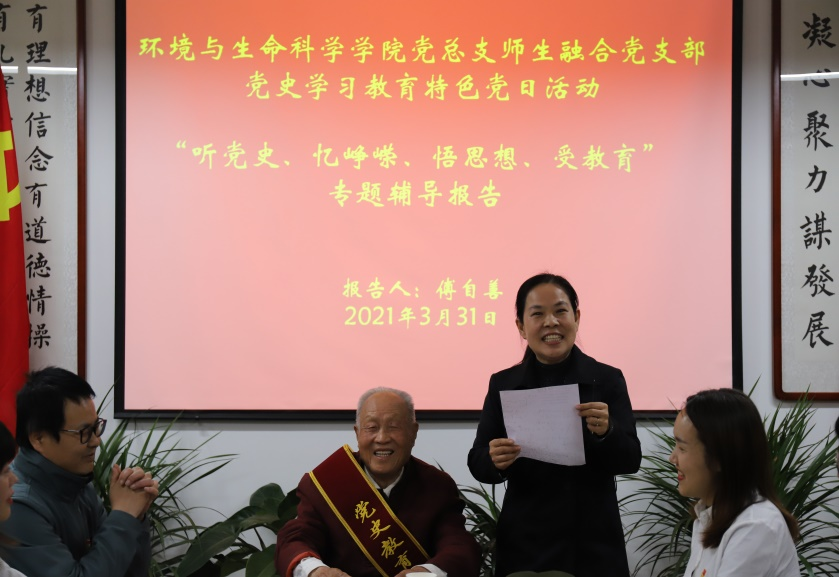 3月31日,公司党总支邀请89岁高龄、67年党龄、“中国人民志愿军抗美援朝出国作战70周年”纪念章获得者傅自善同志,以自己传奇人生和亲身经历为主线,以“讲故事”的方式“以小见大”讲党史,忆峥嵘,使入党积极分子、发展对象和师生党员领悟了思想,接受了教育。