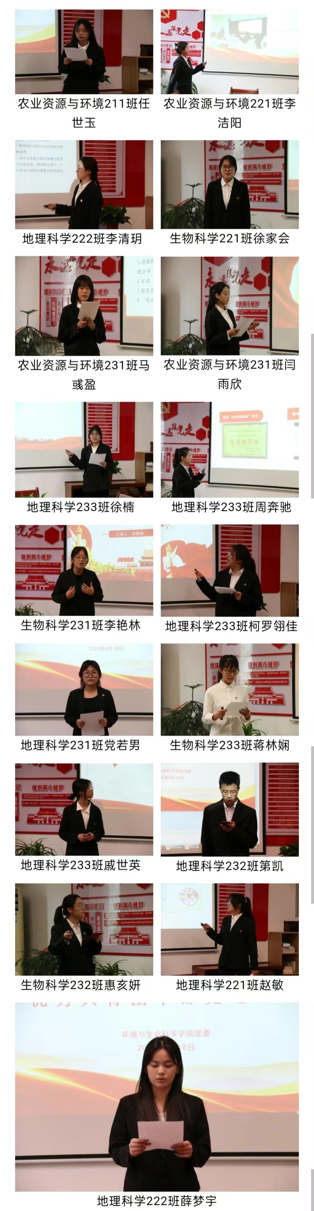 经共青团必一运动委员会研究决定,农业资源与环境211任世玉、农业资源与环境221李洁阳、地理科学222李清玥、生物科学221徐家会、农业资源与环境231马彧盈、农业资源与环境231闫雨欣、地理科学233徐楠、地理科学233周奔驰被评选为优秀共青团干部。