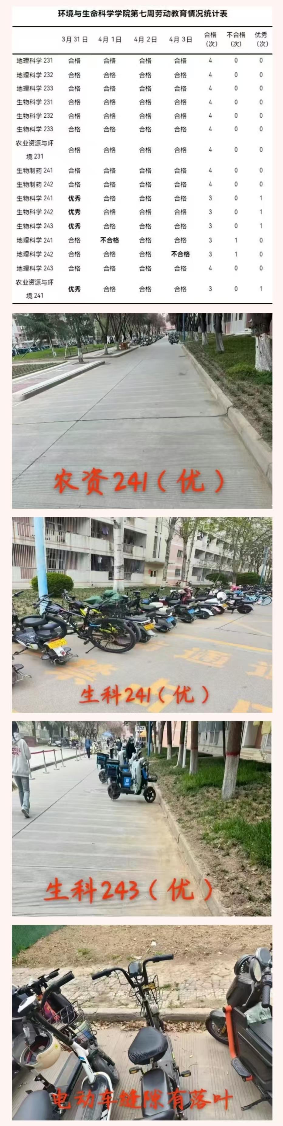 各班级需高度重视反馈的问题,迅速采取行动。全体同学应进一步强化纪律意识,自觉遵守劳动纪律,以饱满的热情和积极的态度投身于日常值日与大扫除等劳动中,共同打造美丽整洁、和谐宜人的校园环境。